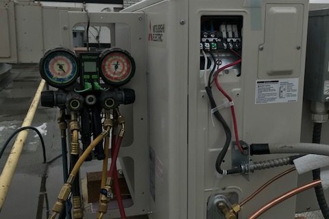 Installation of new ductless splits in an entryway to an ATM room at RBC Bank in Fort St. John